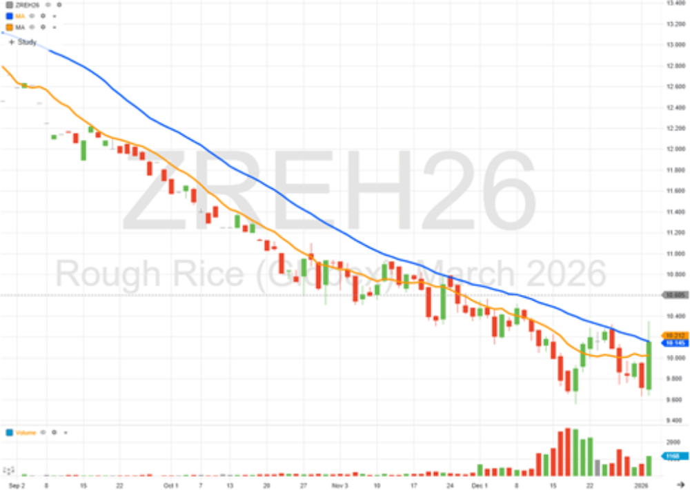 - Crop returns still indicate rice acres will decline again in 2026 which could provide the fundamental input needed for the markets to rally.