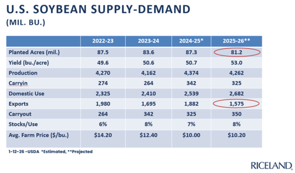 - South American weather and U.S. planting intentions will be key market drivers as we start the 2026 calendar year.